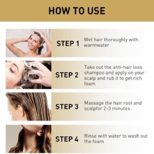 - تُوضع كمية مناسبة من الشامبو وتُدلّك بلطف حتى تتكوّن رغوة غنية.